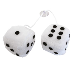 Pimp bilens interiør med disse berømte terninger. De hvide terninger kan nemt hænges på det indvendige spejl som dekoration eller fastgøres til vinduet med sugekoppen. De bløde plysterninger har en størrelse på ca. 6x6x6x6 cm og er forbundet med en 40 cm lang nylonsnor.